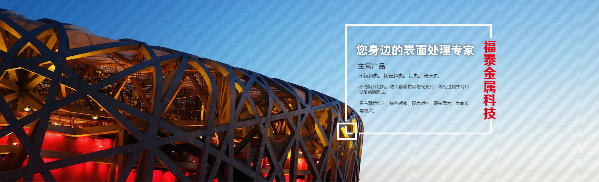 常州市福泰金属科技有限公司(原常州市福泰钢丸有限公司)是一家国内较早致力于金属表面处理的的专业公司。 公司地处中国经济活力和发展前景的长江三角洲核心经济圈——常州市天宁区三河口工业园, 依托于长三角繁荣的经济背景和高效便捷的物流,我们致力于成为中国金属磨料领域的领军力。 主要生产不锈钢丸,切丝钢丸、铝丸、光亮剂。不锈钢丝切丸选用氢态拉丝与光亮后,再经过自主专用设备制造而成。 具有颗粒均匀、结构紧密、硬度适中、覆盖面大、寿命长等特点。 产品性能完全可以替代进口产品,而价格大幅度低于进口产品, 为客户节省成本;用不锈钢丸处理后的铸件表面光洁不生锈,无须再进行酸洗等后处理,有利于环境保护。